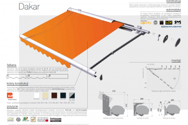 Dakar doskonale nadaje się do zacienienia większych tarasów. Pełna kaseta o opływowych kształtach nadaje tej markizie nowoczesny i elegancki wygląd równocześnie osłaniając tkaninę i ramiona przed szkodliwymi czynnikami atmosferycznymi. Aby dodatkowo zwiększyć ochronę tkaniny zastosowano wewnątrz kasety uszczelki zabezpieczające.