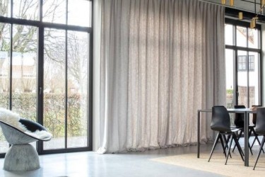 Teksturowana, luksusowa, gładka zasłona utkana poprzez połączenie matowych przędz lnianych i błyszczących włókien syntetycznych. Glitter zapewnia szykowne, modernistyczne odbicie na powierzchni. Paleta 6 kolorów ma metaliczny akcent i składa się z delikatnych szarości oraz naturalnych kolorów lnu.