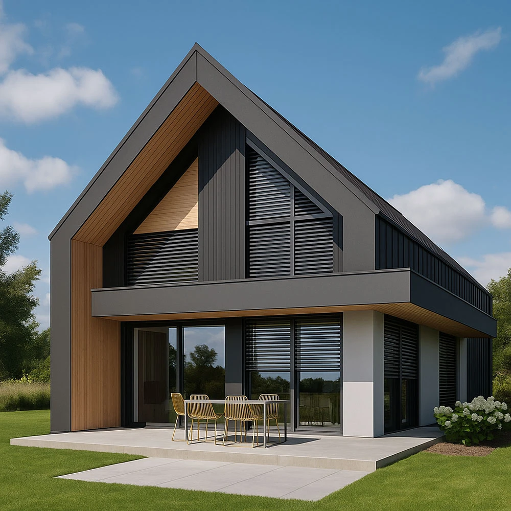 Żaluzje fasadowe skutecznie redukują nagrzewanie wnętrz w upalne dni, a jednocześnie zapewniają odpowiedni poziom światła i prywatności. To rozwiązanie, które doskonale komponuje się z nowoczesną architekturą i minimalistycznym stylem domów typu Stodoła.