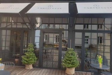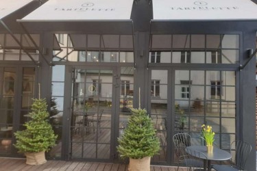 Przy ul. Stradomskiej w Krakowie zainstalowaliśmy Markizy Typu Italia z nadrukiem Logo Cukierni Tartelette.