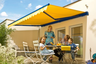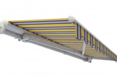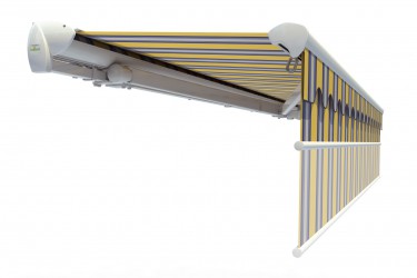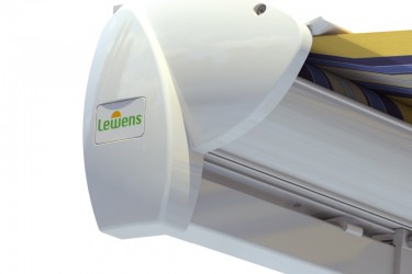 Markiza z innowacyjnym systemem Lewens-Matik i możliwością zastosowania falbany VARIO VOLAT – przednia pełna falbana sterowana elektrycznie lub na korbę. Profil wysięgu owalny. Wykonywana standardowo z falbaną. Osłona zabezpieczająca poszycie. Daszek półzamknięty jako opcja.