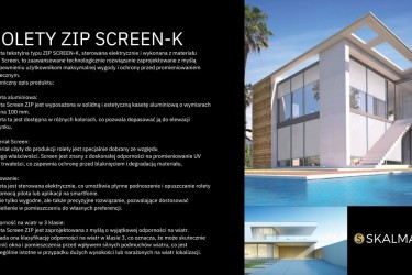 Te cztery główne cechy rolety ZIP SCREEN-K sprawiają, że jest to doskonałe rozwiązanie dla osób poszukujących funkcjonalności, trwałości i estetyki w jednym produkcie. Roleta ZIP SCREEN-K nie tylko chroni przed słońcem, ale także dodaje elegancji i nowoczesności wnętrzu.